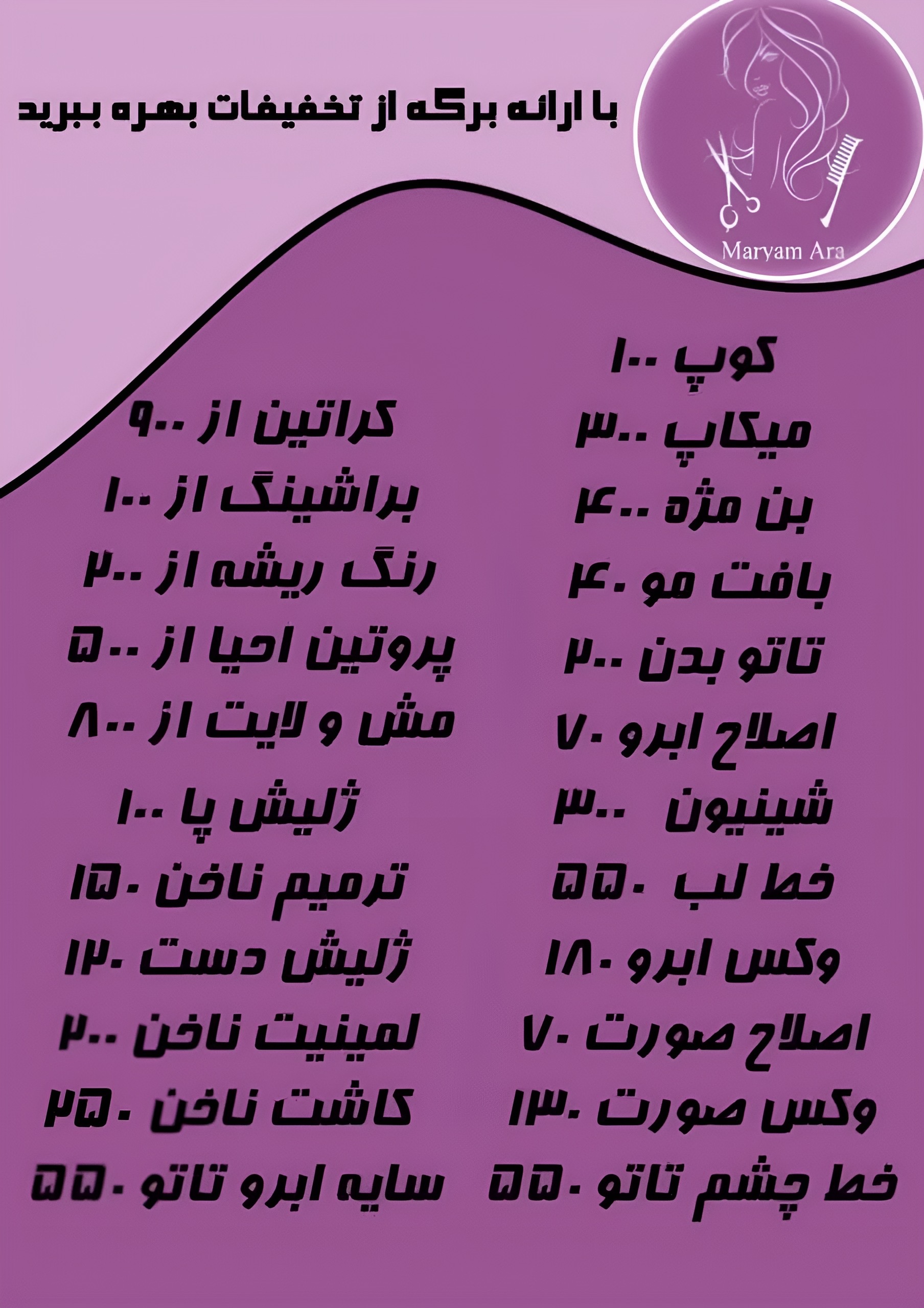به مدت محدود خدمات اقتصادی انجام میدیم باور کردنی نیست ؟ سالن زیبایی فعال تهرانپارس فلکه چهارم خ وفادار پ 1082 مریم ارا 09125729627 با تعیین وقت قبلی