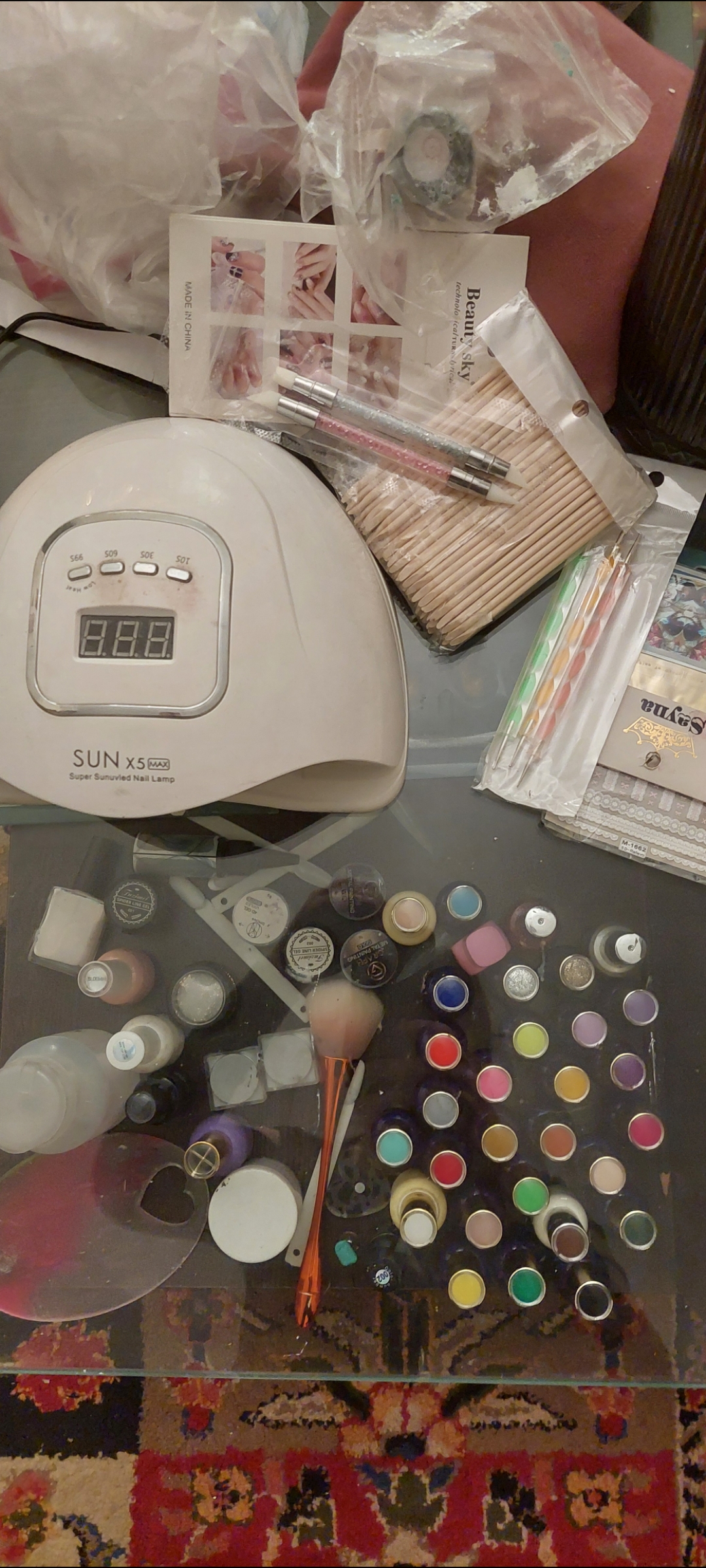 کلیه لوازم طراحی ناخن نو کلاس طراحی رفتم وسایل تهیه کردم تمرین کردم فقط باهاش ولی سر کار نرفتم لاک ژلها مارک یونی کورن هستن پینت ژلها ارس و قلموها امها هستن یووی سان و خیلی از اقلام حتی باز نشده بسته بعدیشان و همه اقلام کامل هستن لیستشون موجوده قیمت 14700
