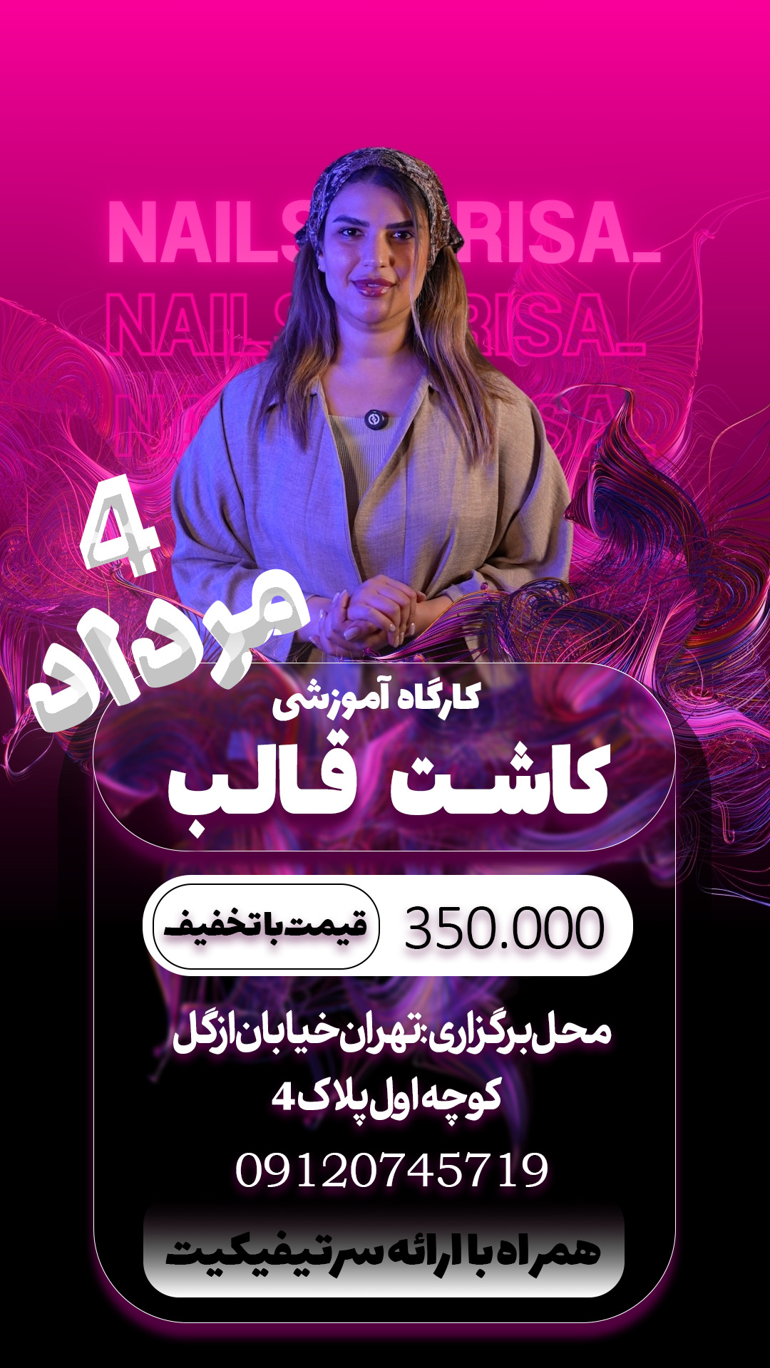 ورکشاپ صفر تا صد کاشت قالب شامل: مانیکور اکسپرس شناخت انواع ژل ها و کارایی انها اموزش کاشت قالب سوپر اسلیم اموزش کاشت قالب سالنی اموزش کاشت قالب ردی تو گو اموزش انواع دیزاین زیر کاشت قالب اموزش امبره با قالب همراه با ارائه سرتیفیکیت شرکت در دوره تاریخ برگزاری: شنبه 4 مرداد ماه ساعت : 14 الی 17 محل برگزاری: تهران ازگل اکادمی پریسا عباسی جهت رزرو: 09120745719 مدرس: پریسا عباسی