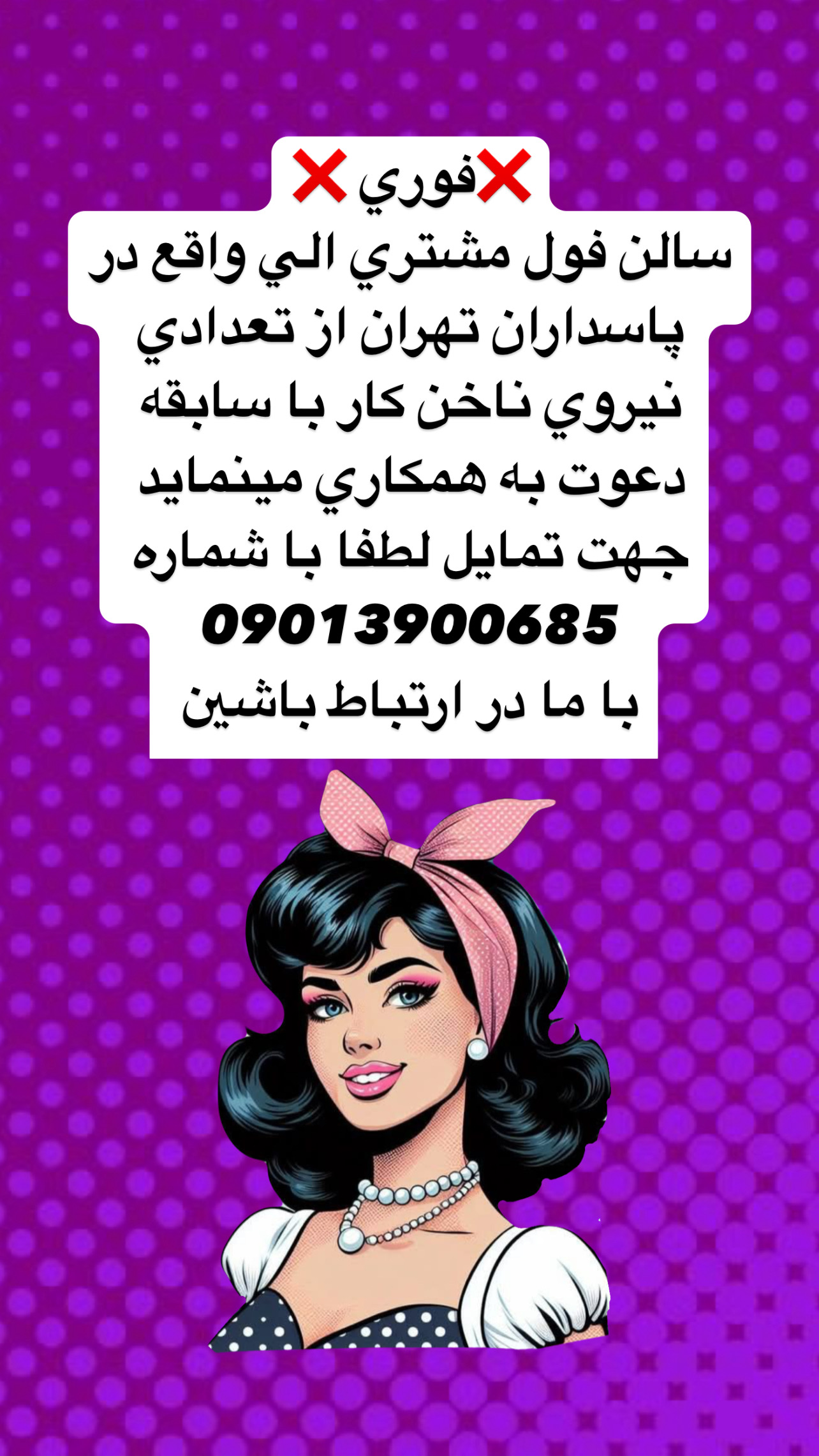 ❌فوری‼️سالن فول مشتری الی واقع در پاسداران تهران از تعدادی نیروی ناخنکار با سابقه دعوت به همکاری مینماید لطفا جهت تمایل با شماره زیر تماس بگیرین راه های ارتباطی: پیامک تلگرام تماس تلفنی واتساپ