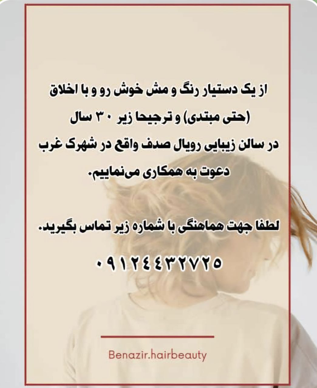 اگهیهای استخدام، اجاره، مدل، تخفیف و یا فروش لوازم در سالنهای شهرک غرب