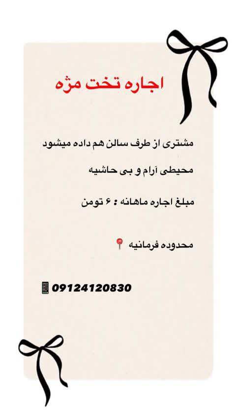 اگهیهای استخدام، اجاره، مدل، تخفیف و یا فروش لوازم در سالنهای فرمانیه
