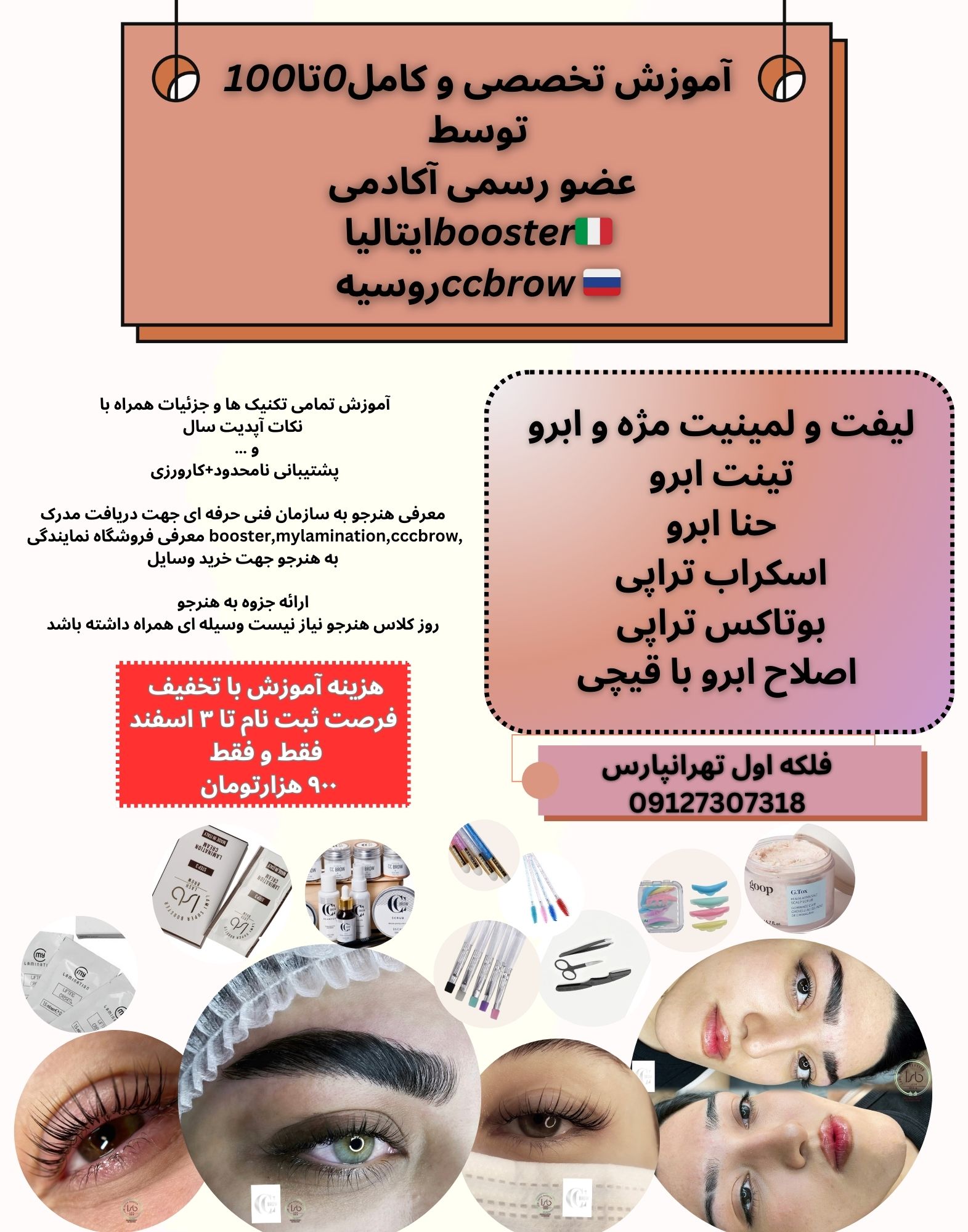 اموزش با 2 مواد مطرح دنیا (mylamination و booster) ایتالیا لیفت و لمینیت مژه و ابرو✅ حنا ابرو✅ تینت ابرو✅ اسکراب تراپی✅ بوتاکس تراپی✅ اصلاح با قیچی ✅ توسط عضو رسمی اکادمی Booster ایتالیا🇮🇹 Ccbrowروسیه🇷🇺 پشتیبانی+کارورزی ارائه جزوه کامل به هنرجو معرفی هنرجو به سازمان فنی حرفه ای جهت دریافت مدرک معرفی نمایندگی booster وmylamination در ایران جهت تهیه وسایل (روز کلاس وسایل کامل تهیه شده و هنرجو لازم نیست وسیله ای همراه خود داشته باشد) جهت ثبت نام از طریق تماس، واتساپ ،تلگرام در ارتباط باشید 09127307318 تلگرام 👇🏻 @nastaranhami راه های ارتباطی: تلگرام پیامک تماس تلفنی واتساپ