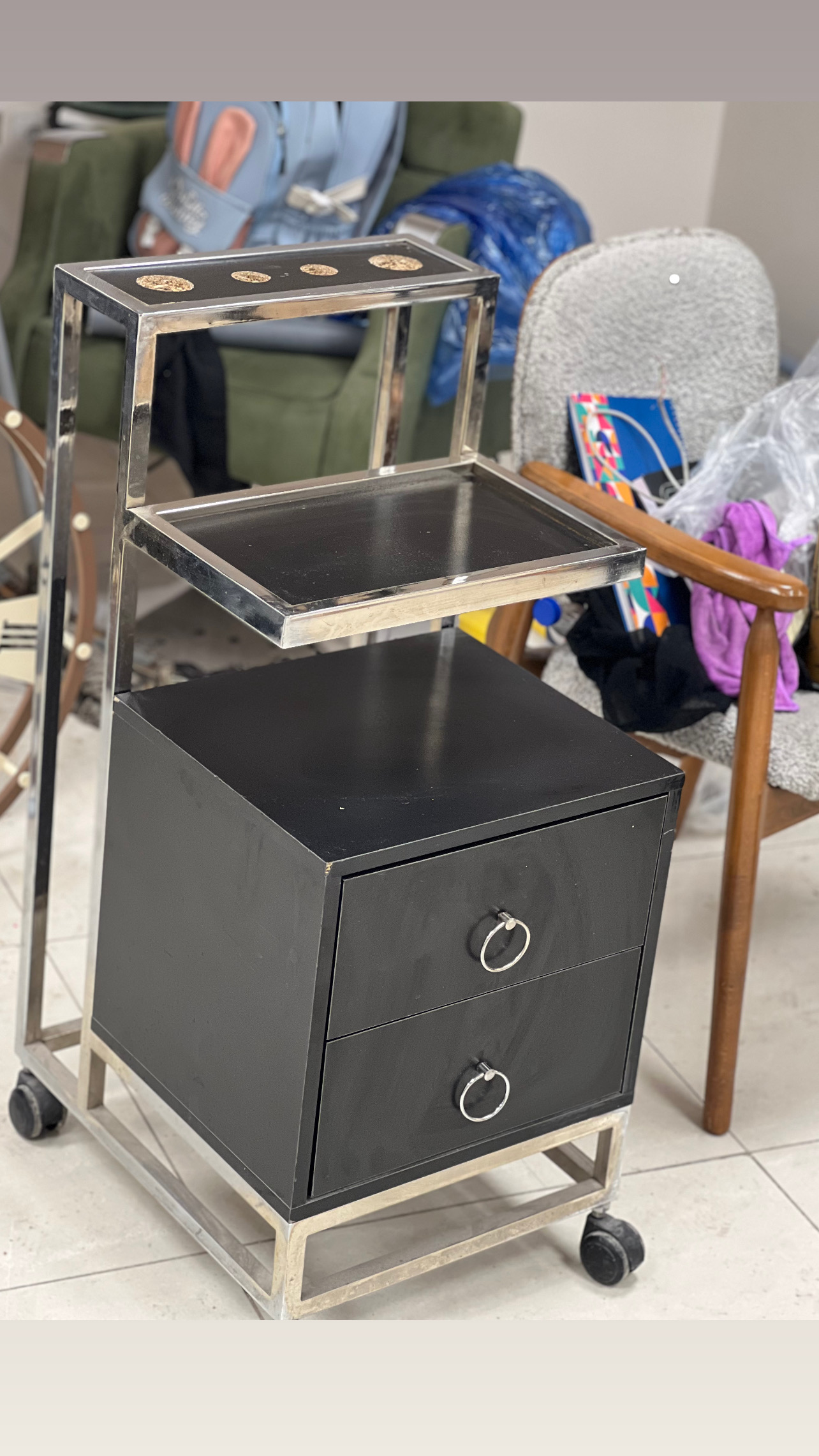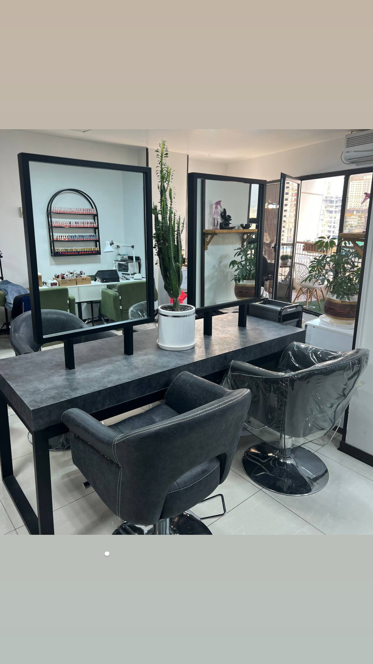 میز و اینه دوطرفه 4تا صندلی رو ساپورت میکنهکاملا نو و تمیز ارتفاع 120سانت عرض 180 یک عدد ترولی کشودار مناسب شنیون میکاپ کوپ راه های ارتباطی: تماس تلفنی
