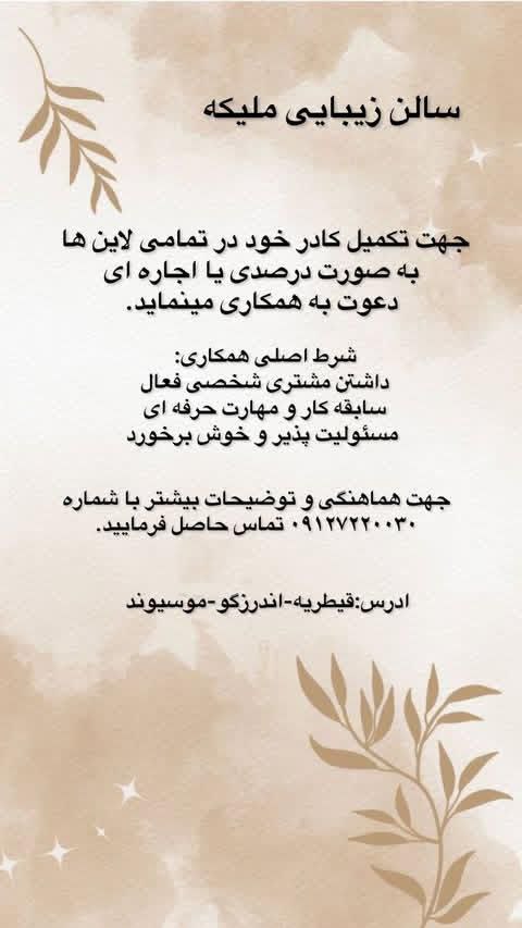 اگهیهای استخدام، اجاره، مدل، تخفیف و یا فروش لوازم در سالنهای اندرزگو