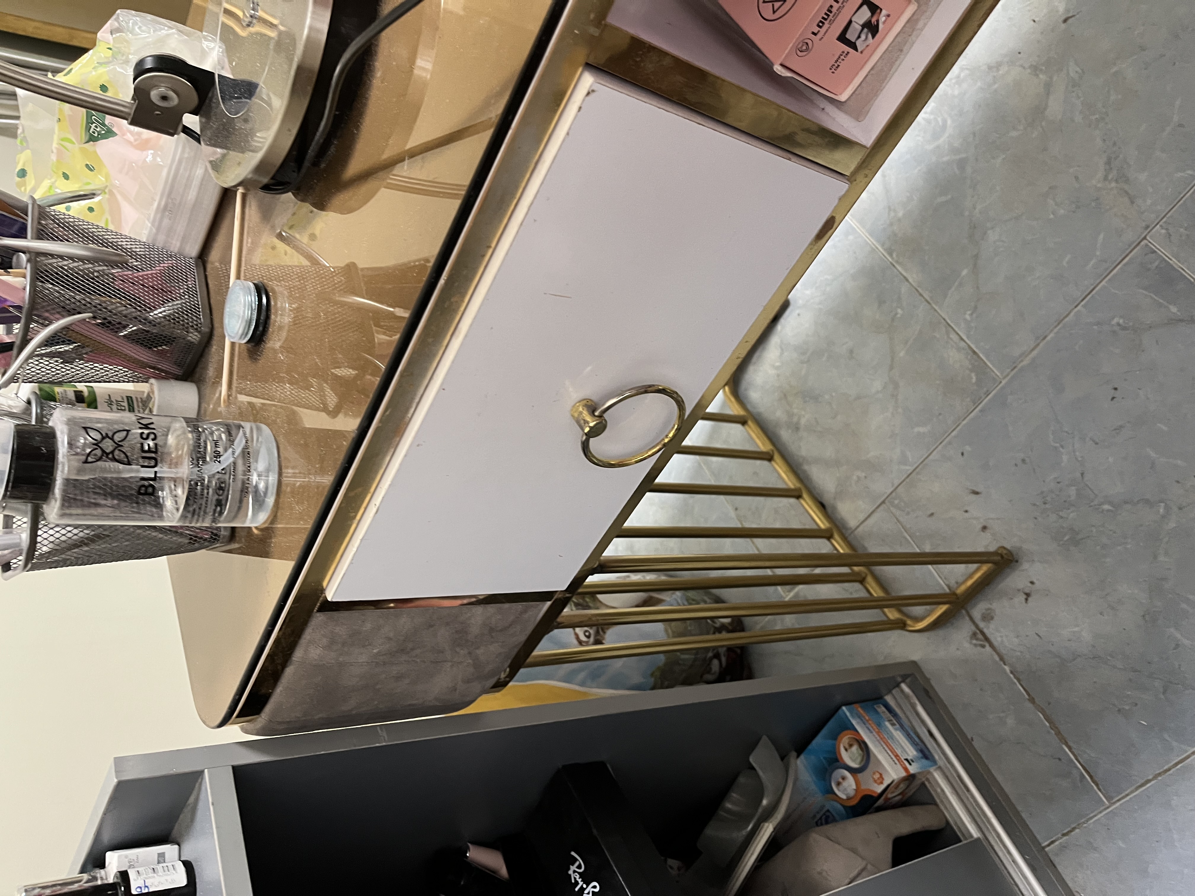 فروش 1 عدد میز ناخن در حد نو بسیار تمیز همراه با شیشه برنز پایه فلزی و چستر مخمل طوسی فقط و فقط2/500 میلیون به دلیل کمبود جا یک عدد پاف انتظار همراه با باسه عدد باکس فقط فقط 1 میلیون تومن راه های ارتباطی: پیامک واتساپ تماس تلفنی