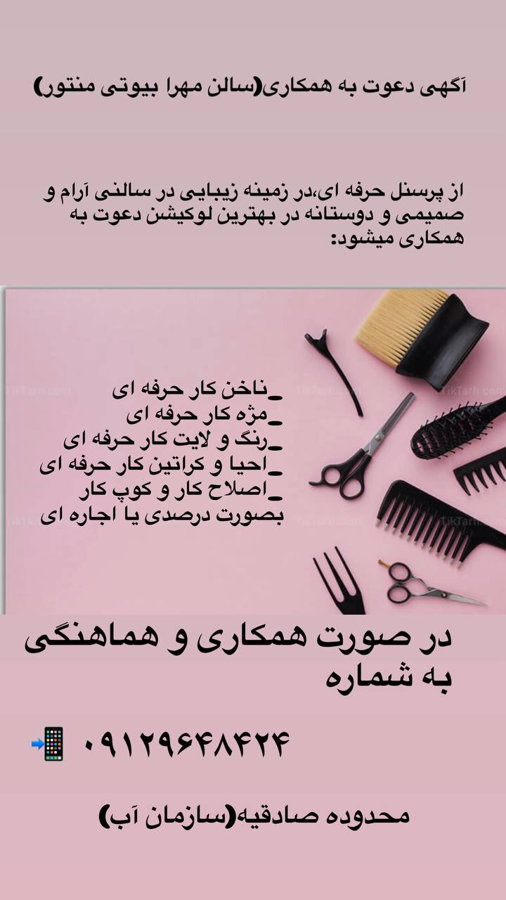 ✨ دعوت به همکاری در سالن زیبایی مهرا بیوتی منتور ✨ به منظور تکمیل تیم حرفهای خود، از 🎨 رنگکار ماهر 💅 ناخنکار حرفهای اصلاح و کوتاهی احیا و پروتئین… از همکاران با انگیزه دعوت به همکاری مینماییم. محیطی ارام و دوستانه، منظم. اگر کیفیت کارت برات مهمه، جای تو اینجاست 🤍