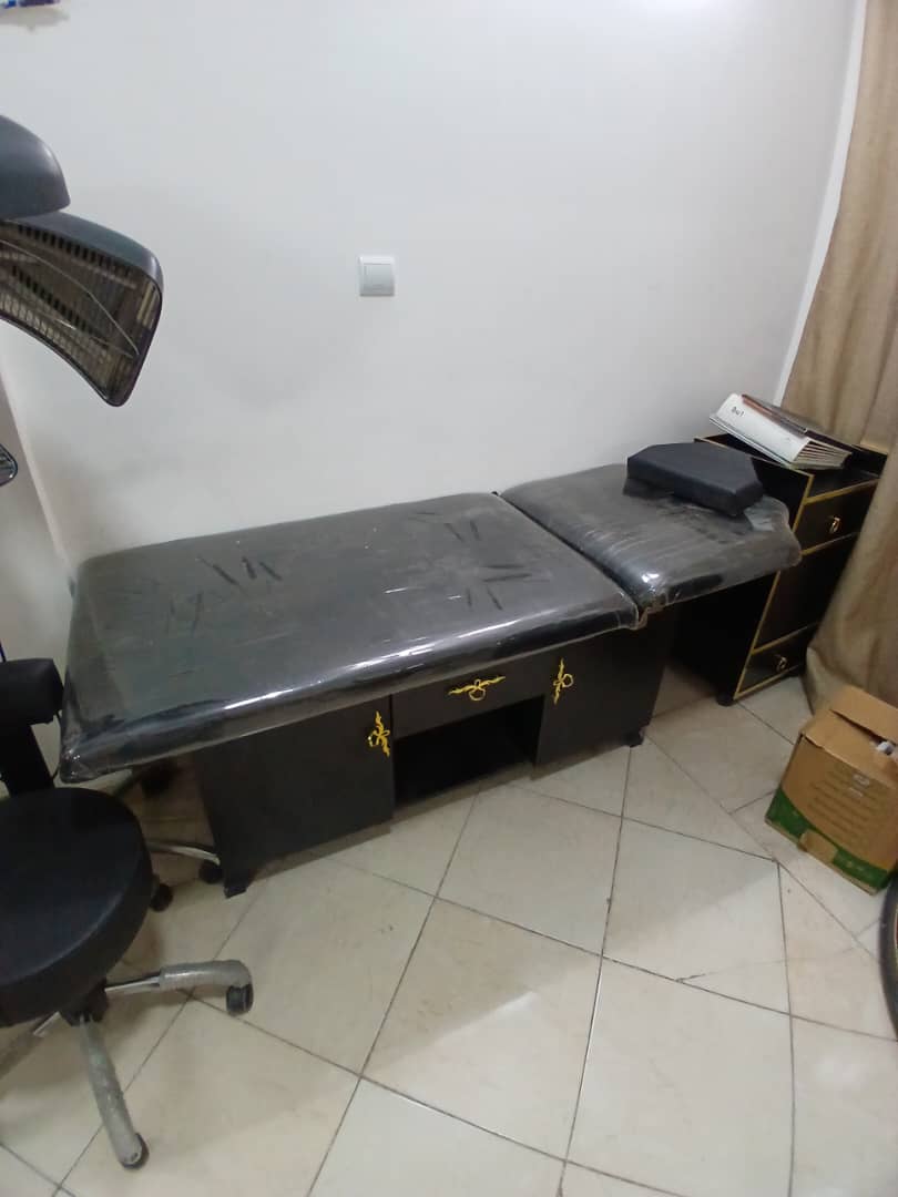 رنگ:مشکی طلایی شامل استند دیواری بزرگ ناخن،دو میز استند دار و کشودار و قفسه دار ناخن، صندلی برای اپراتور ناخن(×2)،صندلی برای مشتری ناخن(×2)، تخت ماساژ/مژه/پاکسازی پوست که قفسه و کشو و دوتا کمدچه دارد، ،ست ترولی کمد دار و قفسه دار تخت مژه، صندلی اپراتور کاشت مژه، دو عدد صندلی جک دار مناسب کوتاهی، سرشور، میز صندوقدار، دستگاه کلامازون(برای پروتئین تراپی و...)، 1 عدد اینه دیواری و کنسول تک کشو برای زیر اینه بعضی اسباب نو و باز نشده هستند. به واتس اپ پیام بدید تا همه عکس ها ارسال شود. ***به خریدار واقعی تخفیف منطقی داده میشود*** راه های ارتباطی: واتساپ تماس تلفنی