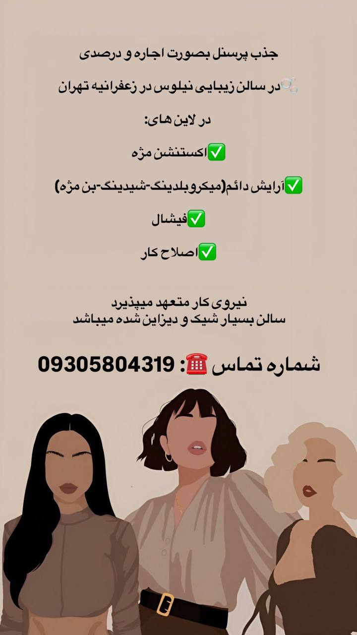 جذب پرسنل بصورت اجاره و درصدی 🫧در سالن زیبایی نیلوس در زعفرانیه تهران در لاین های: ✅اکستنشن مژه ✅ارایش دائم(میکروبلدینگ-شیدینگ-بن مژه) ✅فیشال ✅اصلاح کار نیروی کار متعهد میپذیرد سالن بسیار شیک و دیزاین شده میباشد راه های ارتباطی: واتساپ تلگرام تماس تلفنی