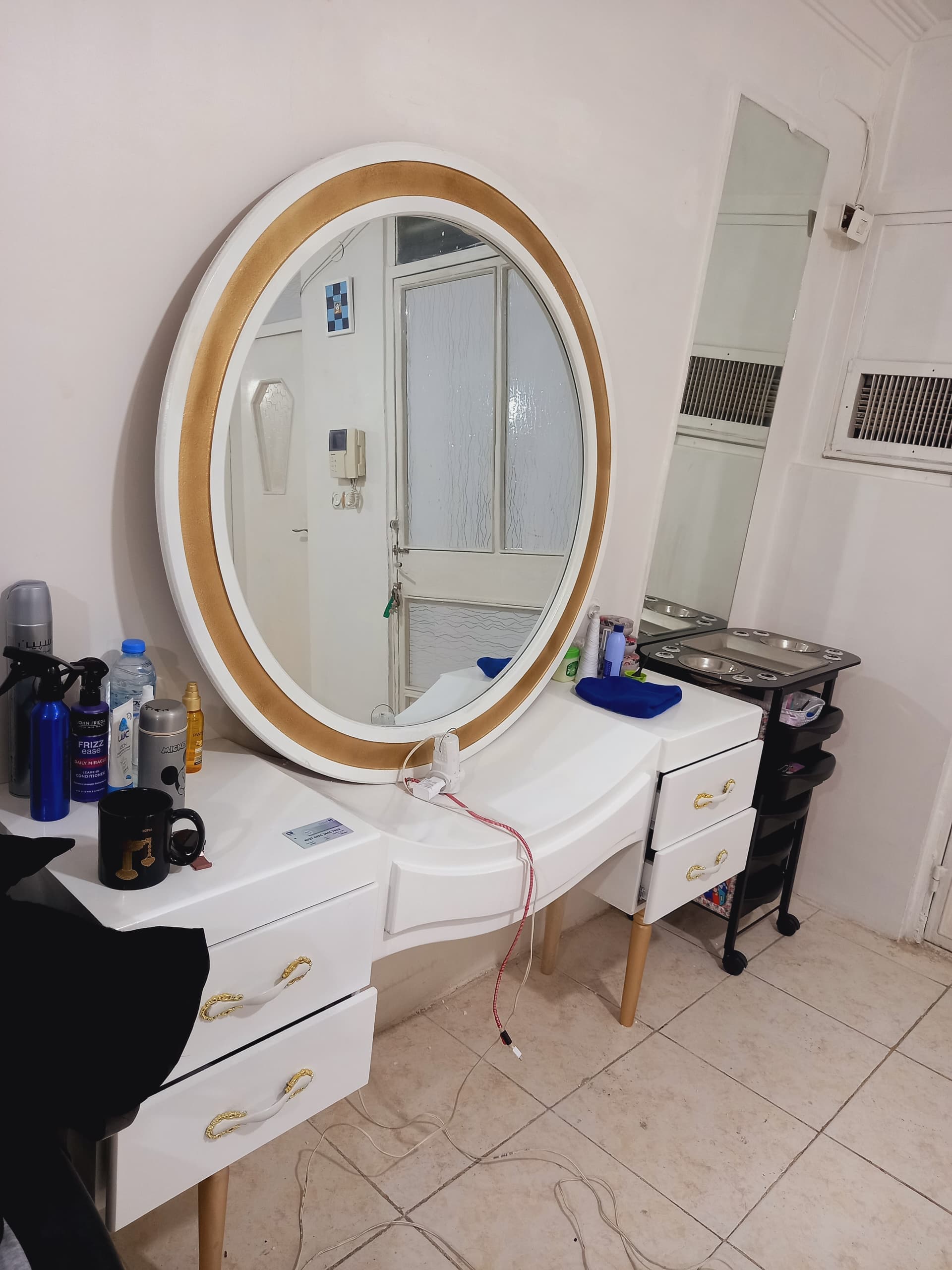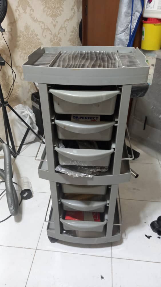 یک جفت کنسول یک عدد سرشور مشکی سه عدد صندلی پدالی مشکی یک عدد میز ناخن سفید 40×100 دوعدد پاراوان 4 تکه یک عدد قاب اینه با کنسول یک عدد ترولی بزرگ و جادار با 6کشور طوسی رنگ تمامی اجناس سالم و تمیز هستند با قیمت عالی راه های ارتباطی: پیامک واتساپ تماس تلفنی تلگرام