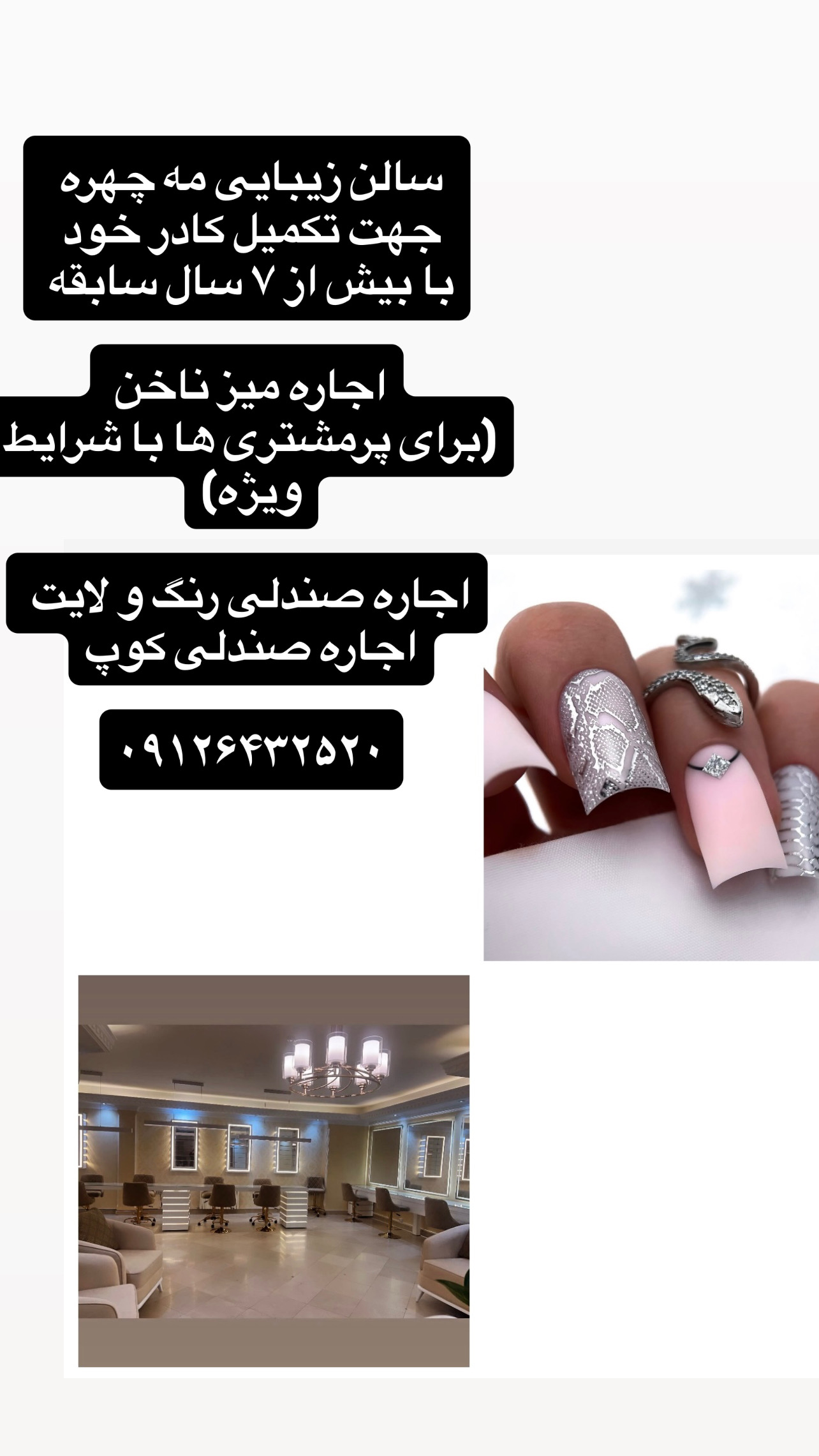 اجاره میز ناخن ( برای پر مشتری ها با شرایط ویژه ) اجاره صندلی رنگ و لایت اجاره صندلی کوپ