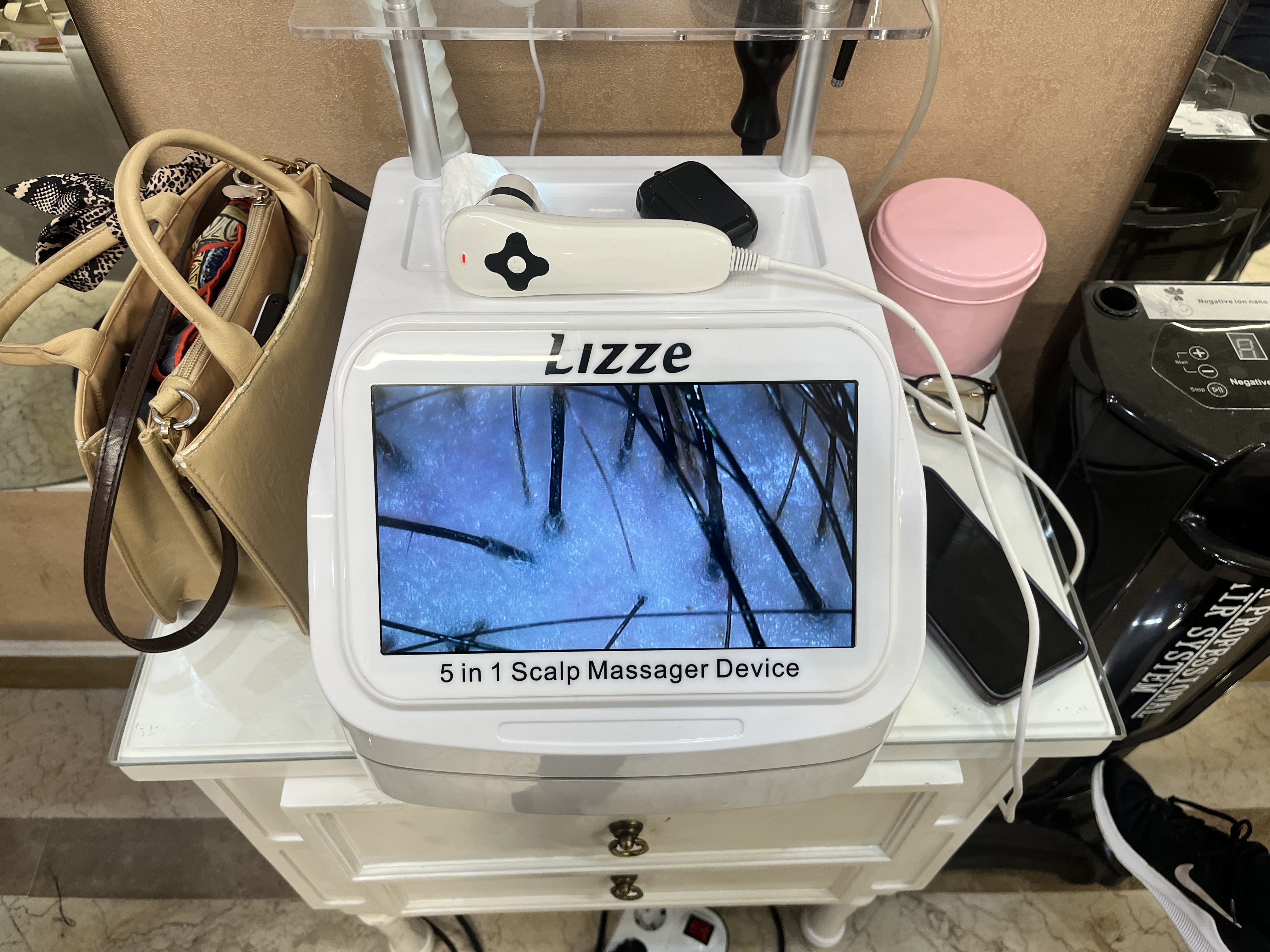 دستگاه انالیز برای اسکالپ 5کاره درحد نو 15اینچ دستگاه نانو استیم ایستاده (مناسب اسکراب و تراپی مو) رنگ مشکی راه های ارتباطی: پیامک تماس تلفنی