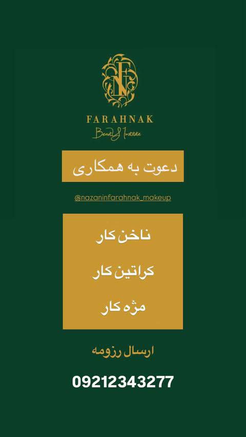 از پرسنل حرفه ای با مشتری برای همکاری در یک محیط صمیمی و با سابقه در منطقه ی فرمانیه دعوت به همکاری میشود. ارسال رزومه به شماره ی