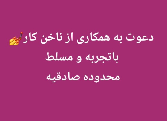 📢 استخدام ناخنکار به یک ناخنکار مسلط و باتجربه جهت همکاری در سالن زیبایی واقع در صادقیه نیازمندیم. ✅ شرایط همکاری درصدی 📞 تماس و هماهنگی: لطفا مشخصات و روزمه کاری واتساپ یا تلگرام ارسال بفرمایید باتشکر راه های ارتباطی: تلگرام واتساپ پیامک