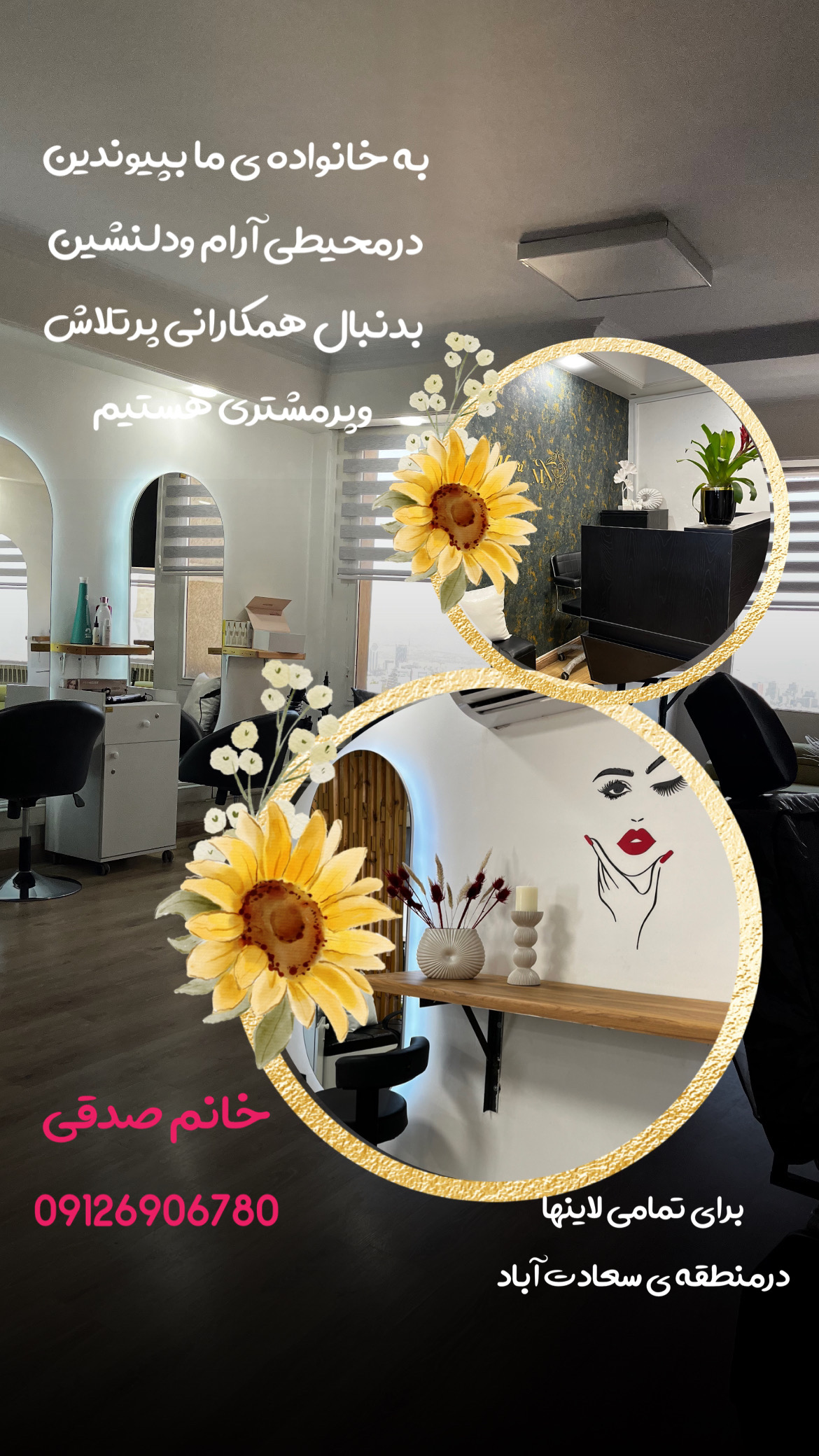 درتاپ ترین منطقه سعادت اباد به مساحت 200مترشیک وباکلاس درمحیطی امن وارام ودوستانه بدون حاشیه برای کسانی که می خواهد کارکنند و یا اموزش بدهند اجاره اتاق وصندلی درلاینهای: رنگولایت تراپی وصافی واسکالپ فشیال پوست ناخن مژه میکرو وارایش دائم مزون ❤️وقت شناسی ونظم و ارامش واخلاق درالویت ماست جهت اطلاع ازهزینه هاوشرایط با شماره تلفن ذیل تماس بگیرین غزاله صدقی