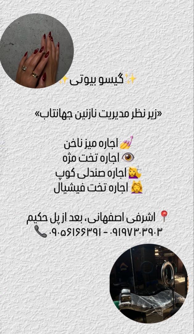 اجاره میز ناخن💅🏻 اجاره تخت مژه 👁️ اجاره صندلی کوپ👱🏻 اجاره تخت فیشال💆🏻♀️