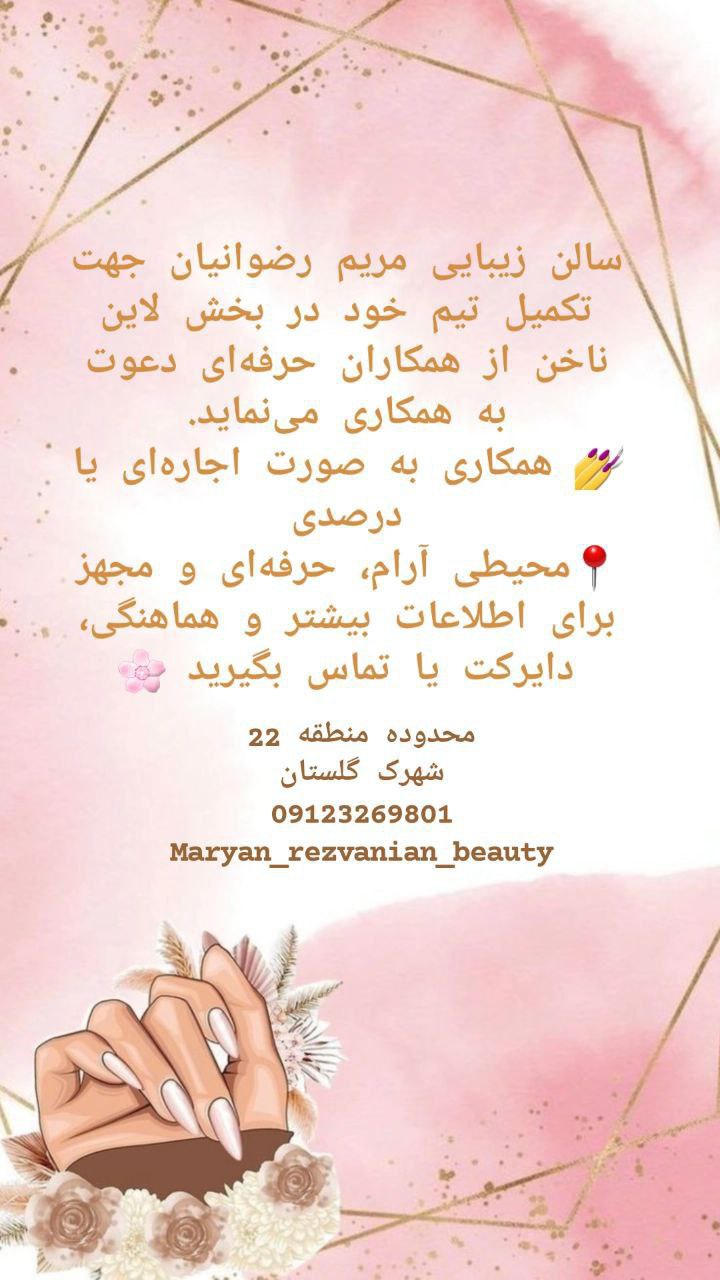 فرصت های شغلی سالن زیبایی مریم رضوانیان