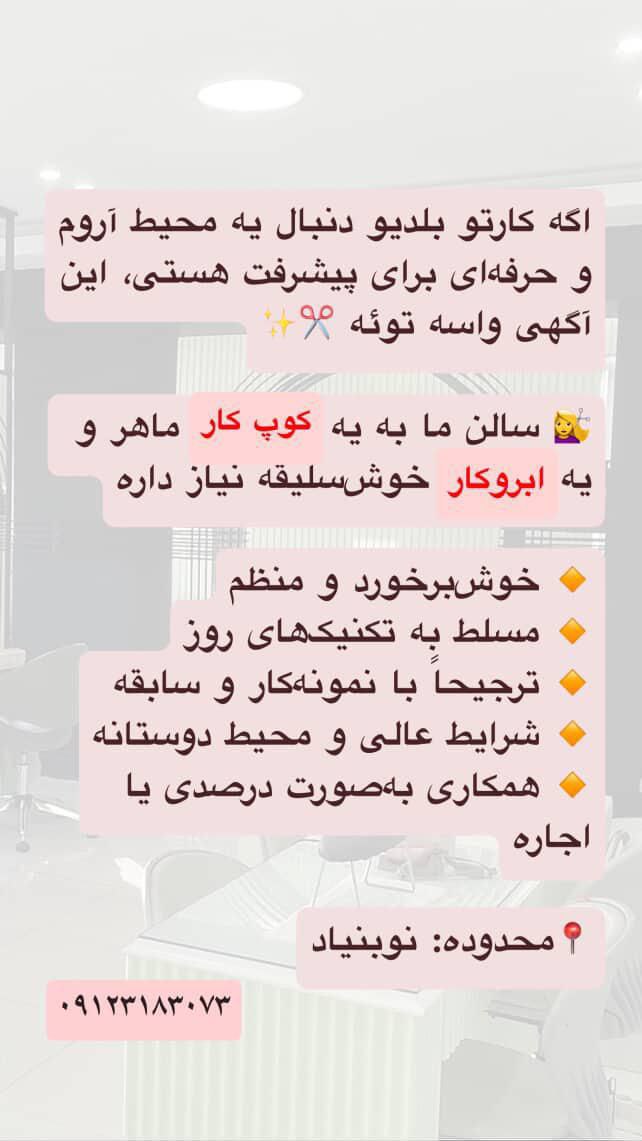 اگهیهای استخدام، اجاره، مدل، تخفیف و یا فروش لوازم در سالنهای نوبنیاد