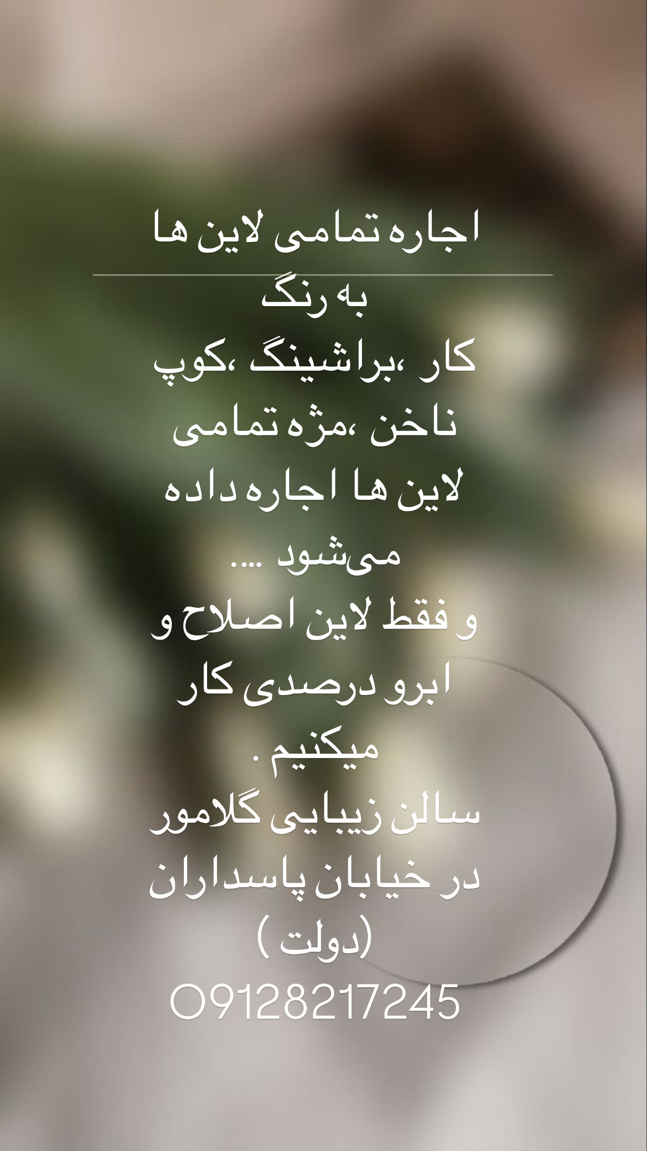 اجاره تمامی لاین ها در سالن زیبایی گلامور در خیابان پاسداران دولت و فقط با لاین اصلاح و ابرو درصدی کار میکنیم اجاره میز ناخن و صندلی های کوپ و رنگ و تخت فقط 4/500 راه های ارتباطی: پیامک واتساپ تماس تلفنی