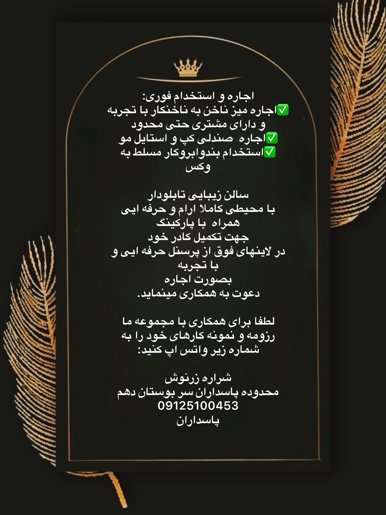 اگهیهای استخدام، اجاره، مدل، تخفیف و یا فروش لوازم در سالنهای پاسداران