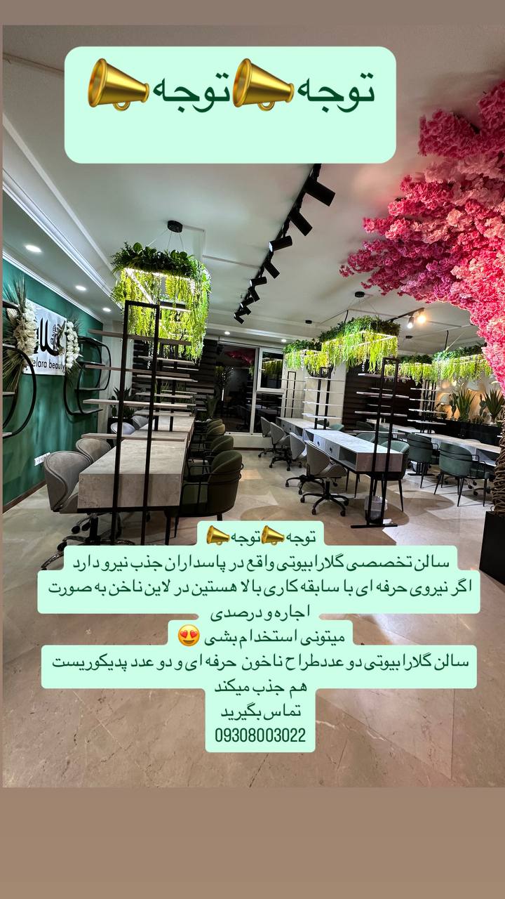 در محیطی ارام و لوکس واقع در پاسداران در لاین های مژه ناخن پدیکور و فیشیال به صورت اجاره ای و درصدی از همکاران با سابقه کار و حرفه ای و مجرب ، بامشتری دعوت به همکاری میکنیم دو عدد طراح ناخون حرفه ای استخدام میشود هماهنگی