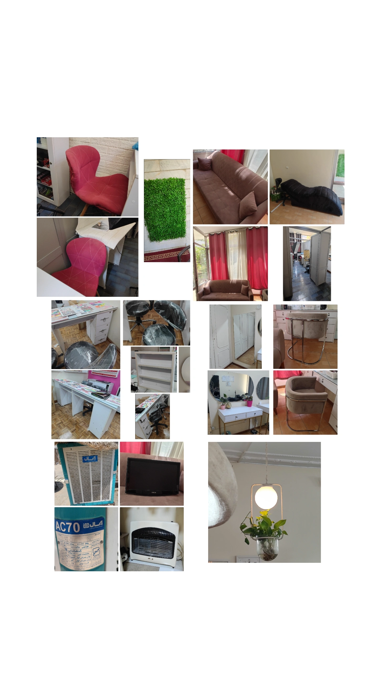 مبل 3 نفره 3ت پرده و حریر و میل پرده 1500 تخت ارگونومیک مژه +صندلی تابوره 4500 سه عدد میز ناخن دو نفره دونه ای 1ت دوتا صندلی تابوره یکیش چرمش خراب شده دوتاش 800 کولر 7000 یکسال و نیم خریداری شده در حد نو 15 ت کولر 5 هزار موتور 7 هزار 10 ت بخاری 2500 تلویزیون سامسونگ 32 اینچ 3ت صندلی طوسی 2500 صندلی سرخابی 800 اینه بیضی +دراور تمام ام دی اف وارداتی 5500 اینه قدی ( یه قسمت پریدگی کوچیک داره)1500 استند کوچیک رومیزی 100 (8 عدد) پارتیشن نو فقط چند ماه استفاده شده حدود 5 متر و نیم ،متری 280 گرین وال 800 لوستر کانتر 1ت راه های ارتباطی: تماس تلفنی پیامک تلگرام
