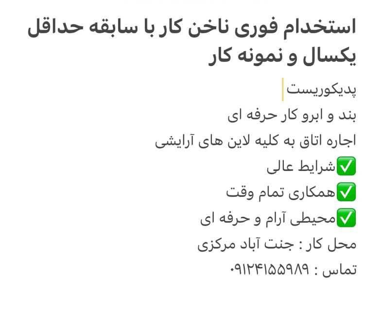 فرصت های شغلی ناخن کار ابرو کار و اتاق